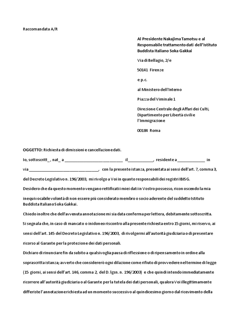 Modulo Lettera Di Dimissioni Dalla Soka Gakkai