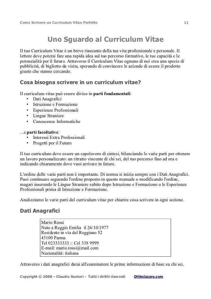 Come Scrivere Un Curriculum Vitae Perfetto Pdf